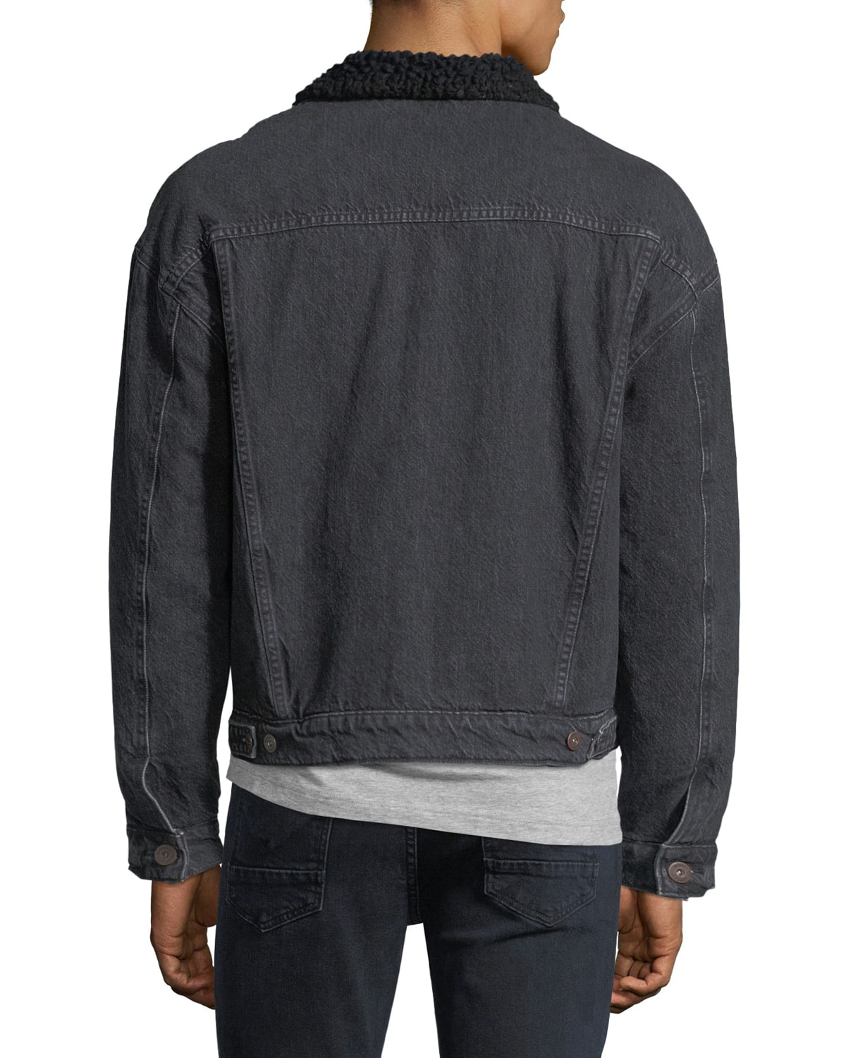 Product Name: Faux shearling trim denim trucker jacket best sale