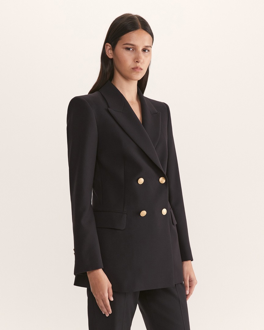 • Celeste Wool Double Breasted Blazer in French Navy SABA
