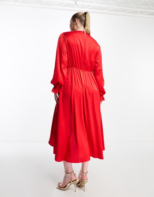 Product Name: Red satin long sleeve wrap dress best sale