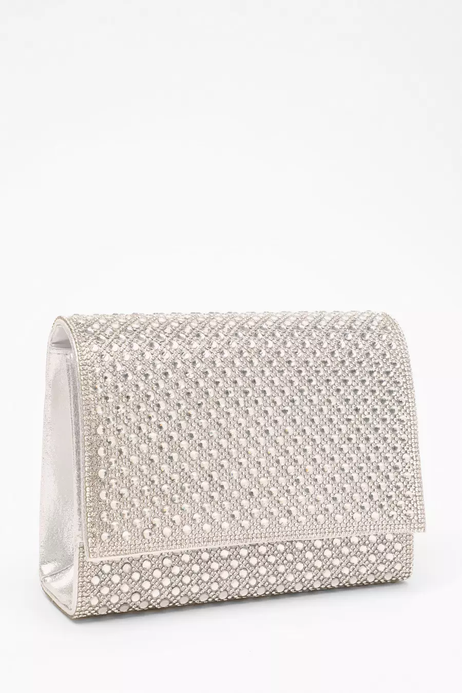 Silver Diamante Embellished Clutch Bag QUIZ Clothing
